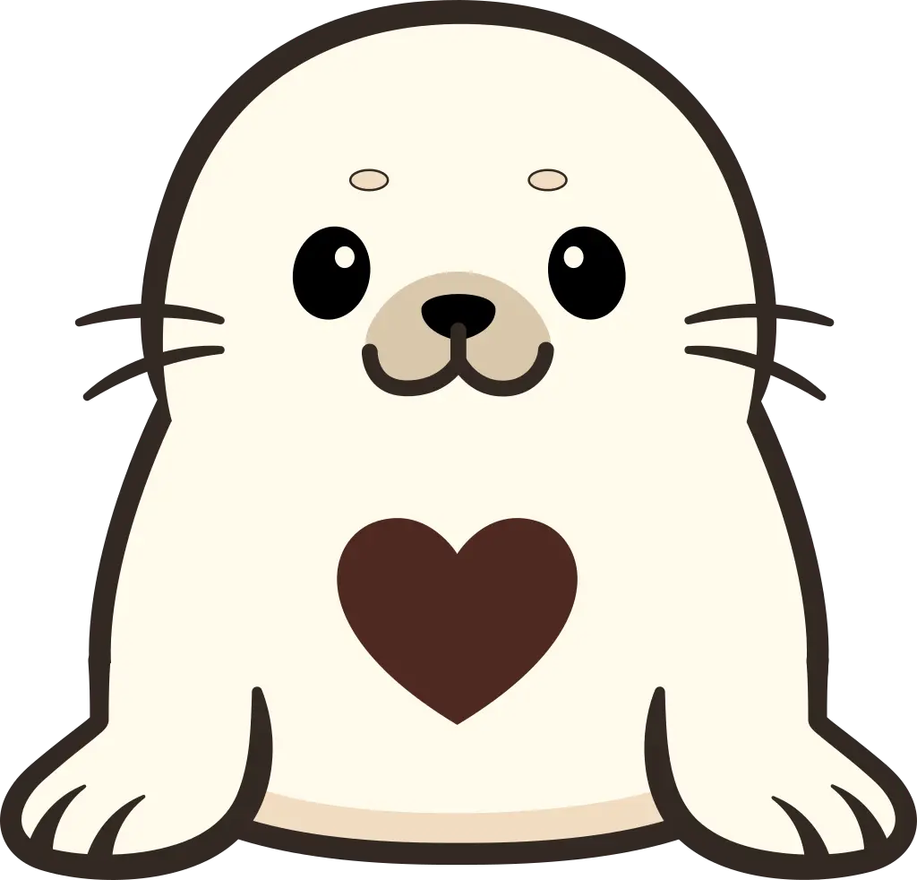 Seally Listen to your heart! | Seally is the cheerful heart of the Arctic crew. He is a smart and playful harp seal pup with a magical heart-shaped spot on his chest. His heart glows in bright colors depending on how others feel. When something exciting is nearby, his heart wiggles and sparkles! Seally loves adventures and always finds kind and clever solutions to tricky problems. | Heart-Light: His heart-shaped spot glows to light up dark caves and calm frightened friends. Alarm: His heart shaped spot shakes/rings like a alarm clock when something exciting is happening nearby |